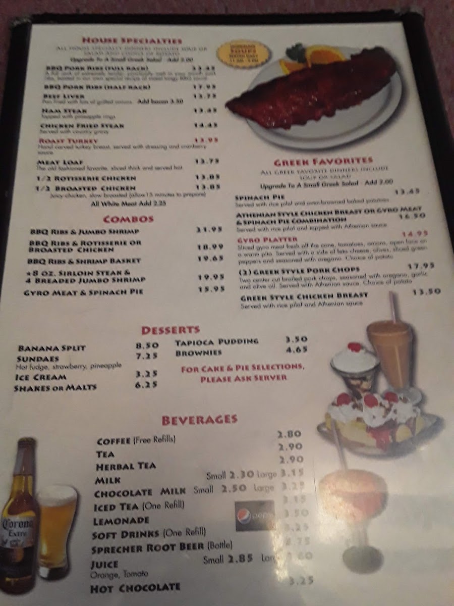 Served with rice pilaf and Athenian sauce.