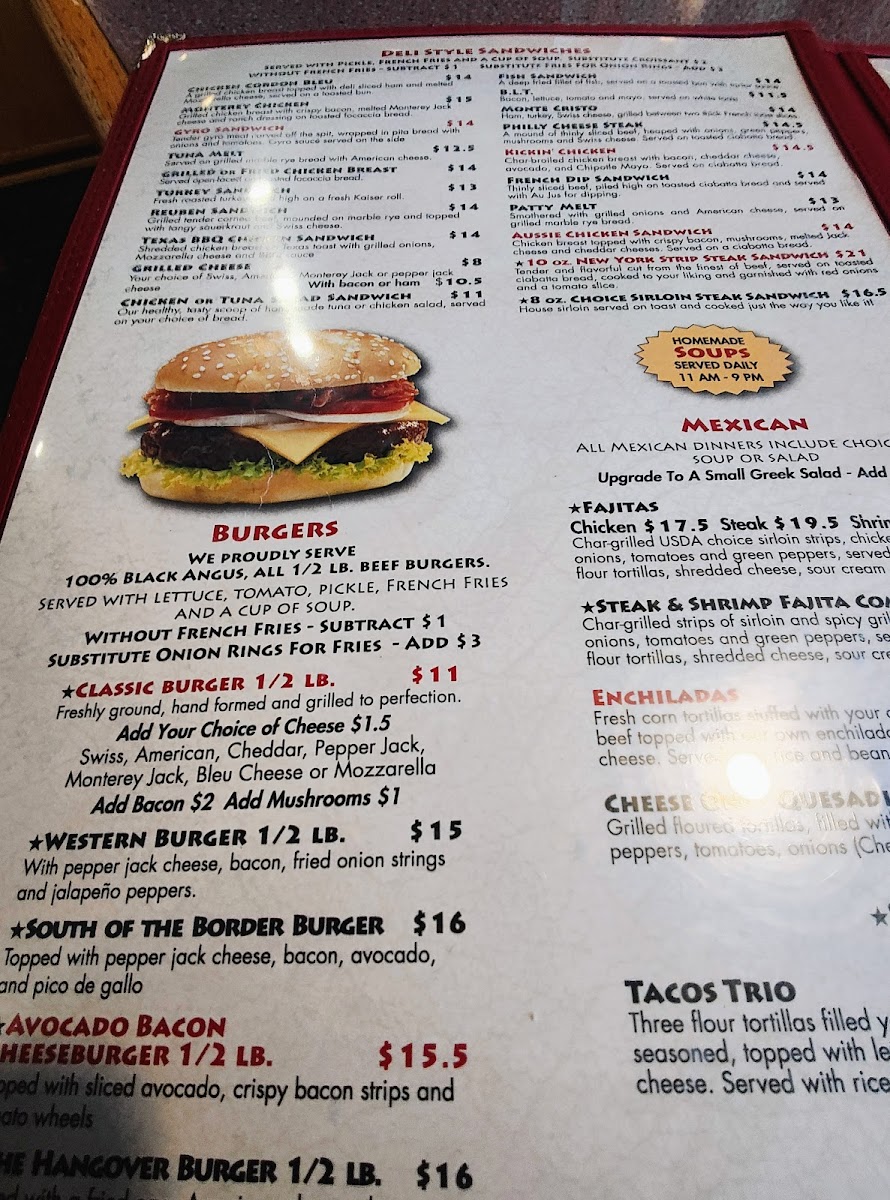 Char-grilled USDA choice sirloin strips, chicken or shrimp, onions, tomatoes and green peppers, served up with warm flour tortillas, shredded cheese, sour cream and salsa. Health Advisory: Eating raw or undercooked meat, poultry, eggs or seafood poses a health risk to everyone, but especially to the elderly, children under age four, pregnant women and other highly susceptible individuals with compromised immune systems. Thorough cooking of animal food reduces the risk of illness. For further information, contact your physician or public health department.