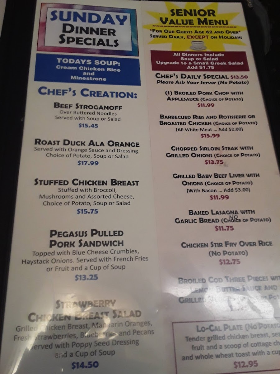 Pegasus Restaurant Milwaukee Menu